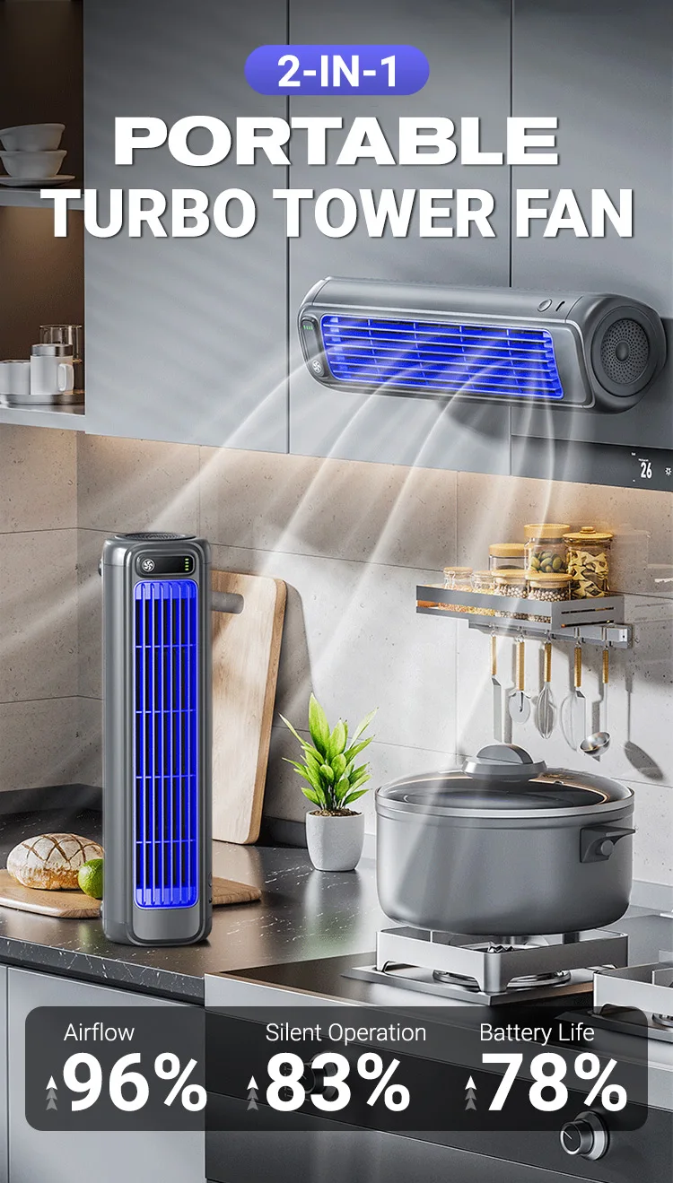 2-in-1 Portable Turbo Tower Fan