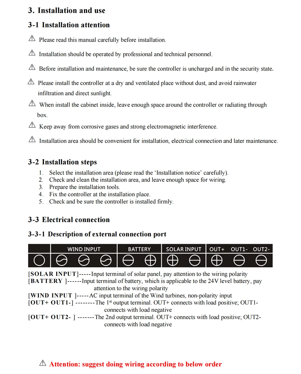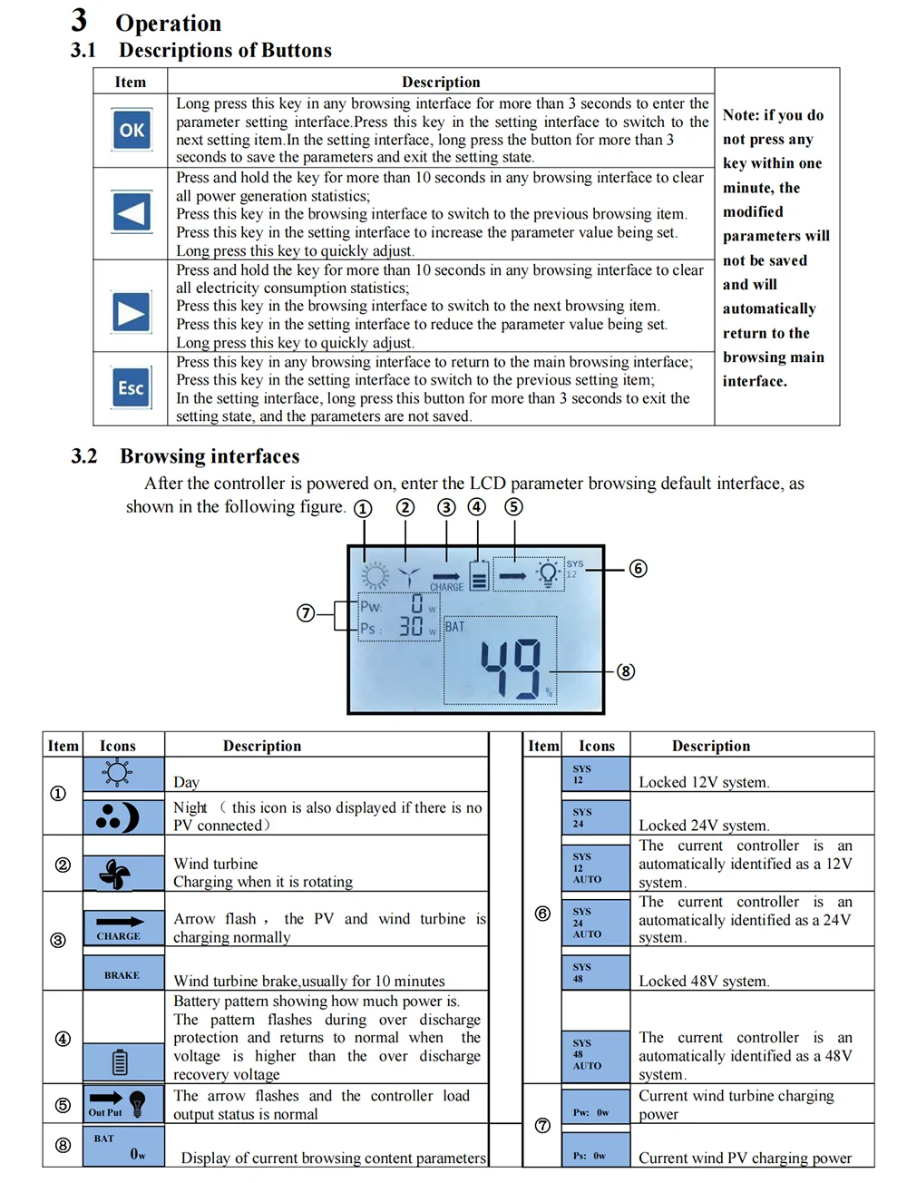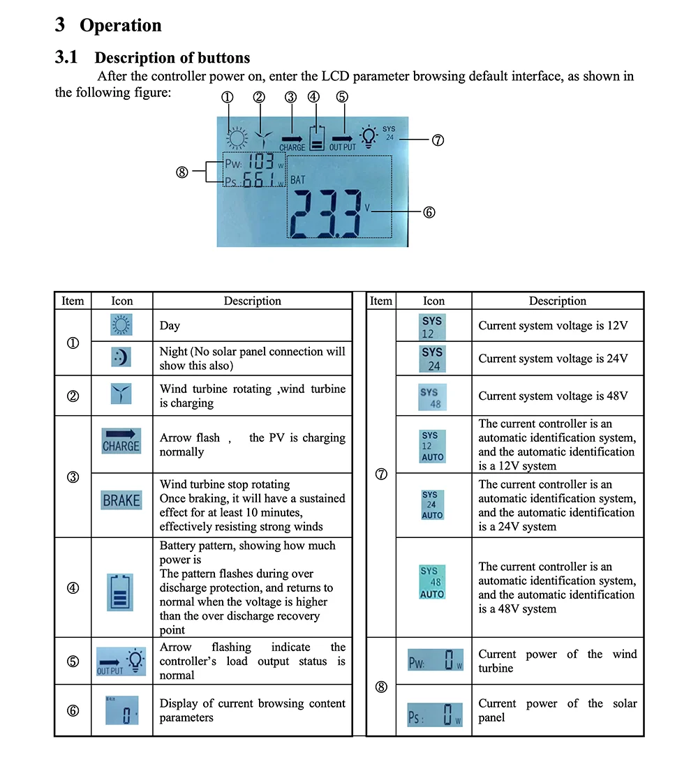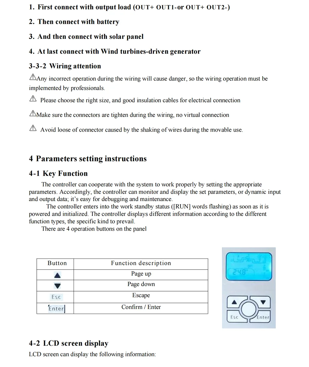 Protection Type:Solar Reversed Charging protection, Battery open circuit protection, Battery anti-reverse connection protection protection, Over current and over voltage auto, Brake protection, Over load protection,etc.