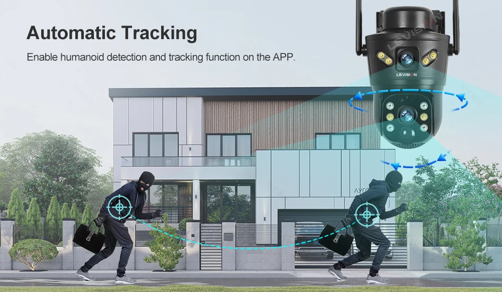 Normally in black and white mode, when the camera detectsa moving object, it will automatically turn on the white lightand switch to full-color night vision mode.