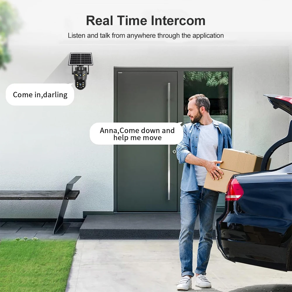 1. 4K dual lens dual-screen wifi solar powered battery PTZ camera