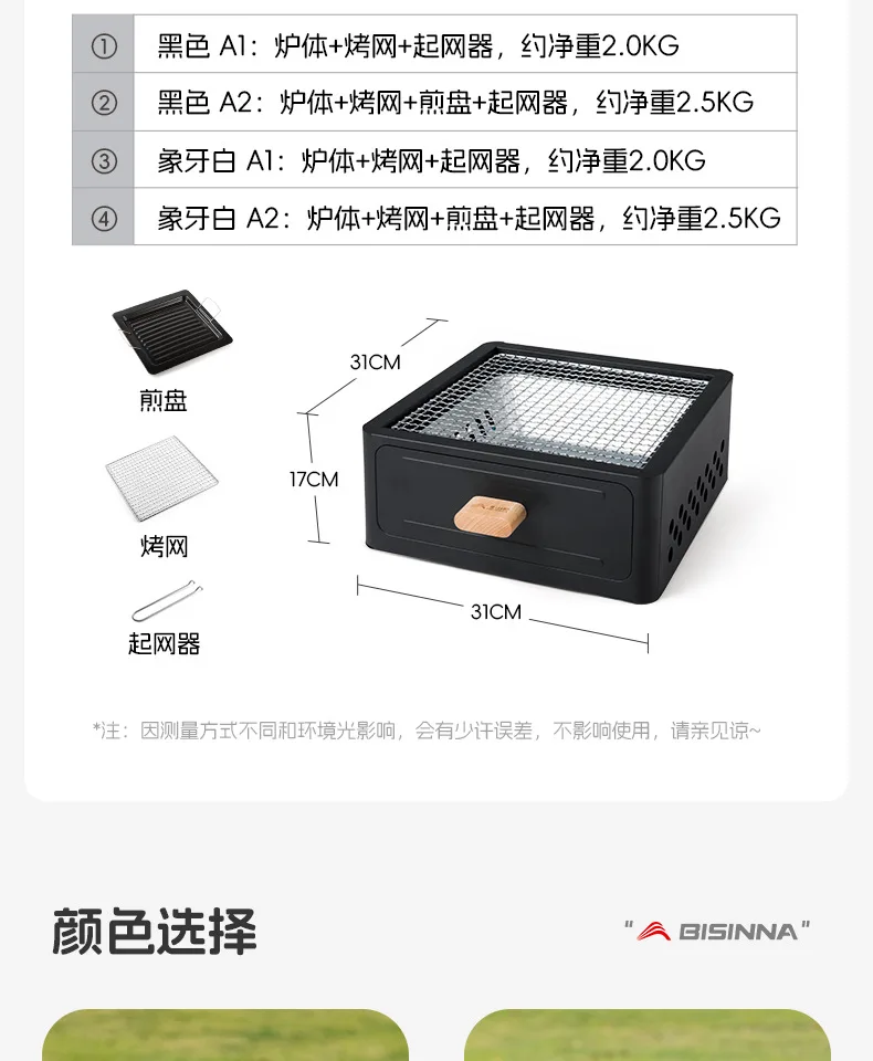 - Black A2: Brazier + Grill + Frying Pan + Grill Lifter, approximately 2.5KG