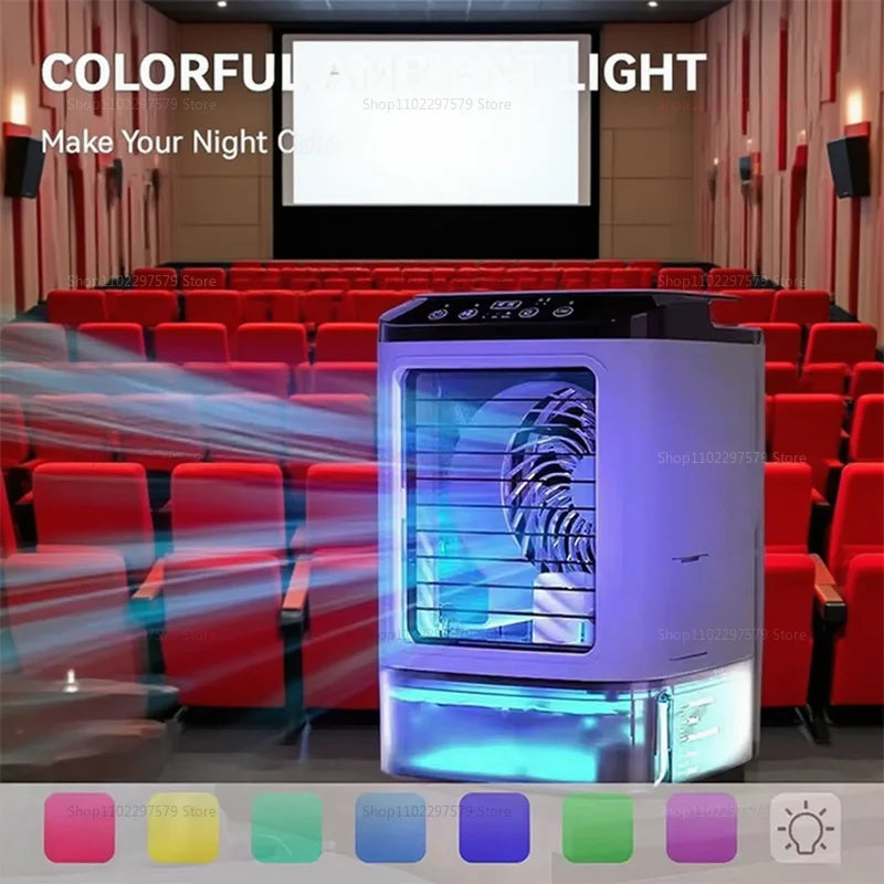 Designed with user convenience in mind, this mini fan incorporates a colorful LED night light, creating a soothing ambiance for bedrooms and relaxation areas. The large-capacity water tank (900mL) ensures extended operation without frequent refilling, while the built-in ice box allows for quick cooling effects. Soft-noise operation and a highly efficient motor provide quiet performance, making it suitable for bedrooms, offices, and outdoor environments.