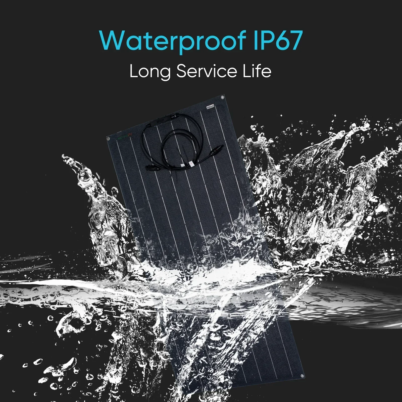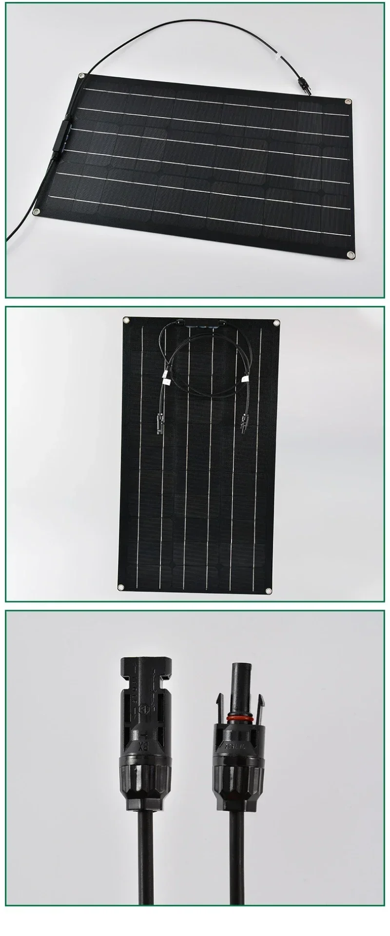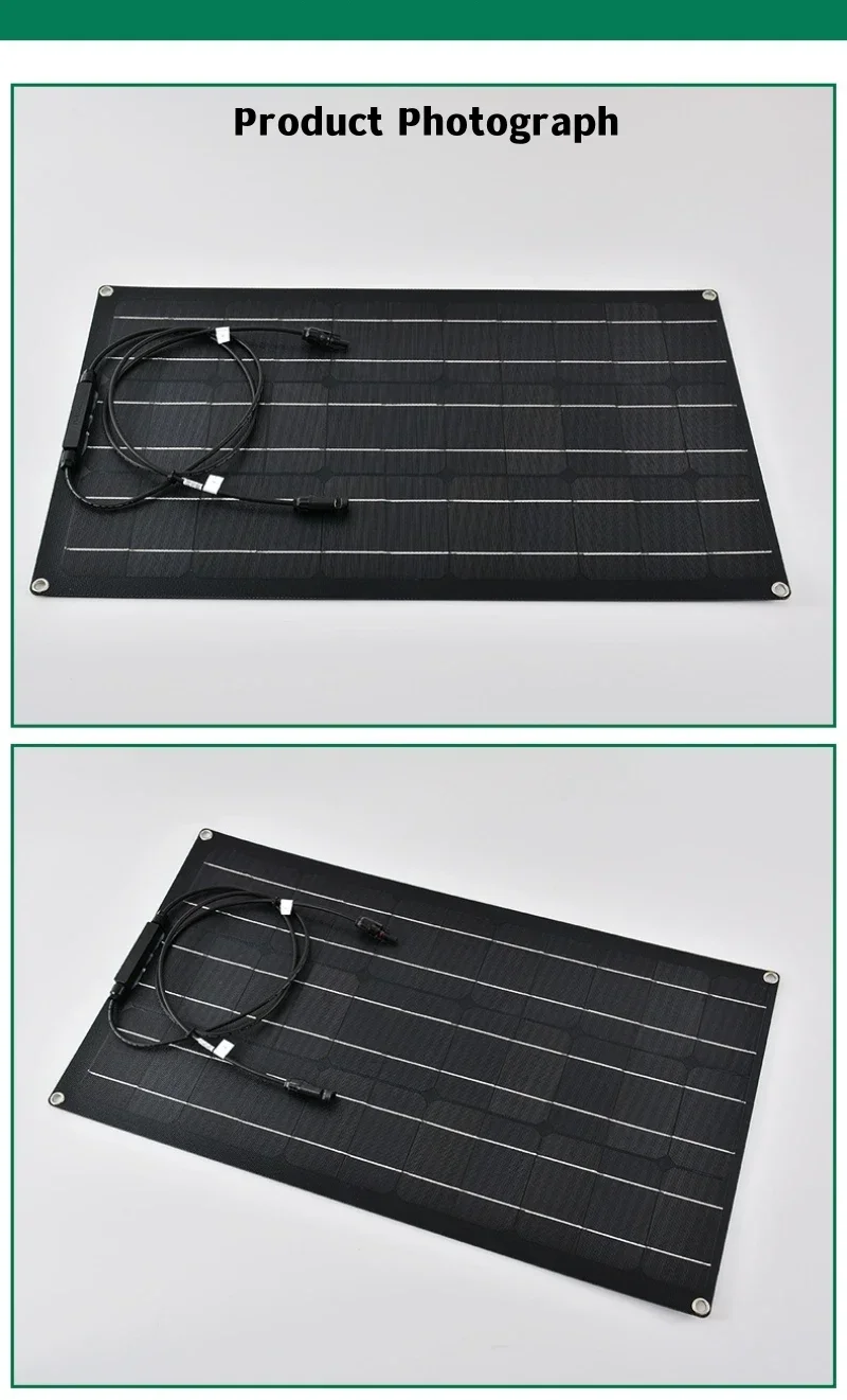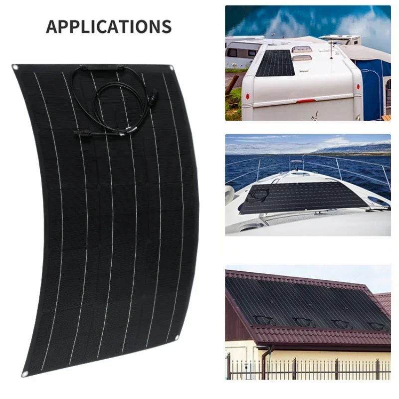 This product is a semi-flexible solar panelthat can be bent up to 30 degrees. It is suitable for mounted on an irregular smooth surfaces such as RV roofs, boats, tents, Yacht, vaulted roofs, etc.