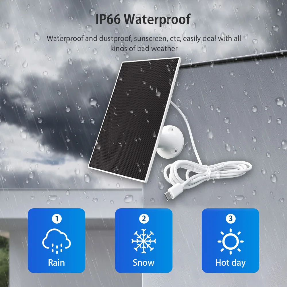 Solar panels support low-power cameras, sleep-type cameras, motion detection-activated cameras, but do not support cameras that require continuous operation for long periods of time.
